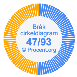 Dessutom kommer vi också att illustrera bråket 47/93 i ett cirkeldiagram och 47/93 som procent i ett cirkeldiagram.