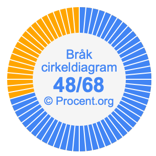 Dessutom kommer vi också att illustrera bråket 48/68 i ett cirkeldiagram och 48/68 som procent i ett cirkeldiagram.