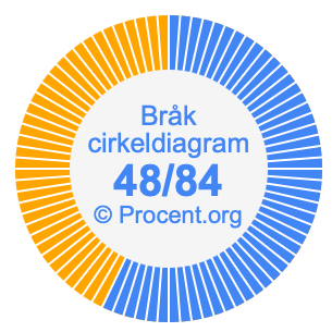 Dessutom kommer vi också att illustrera bråket 48/84 i ett cirkeldiagram och 48/84 som procent i ett cirkeldiagram.