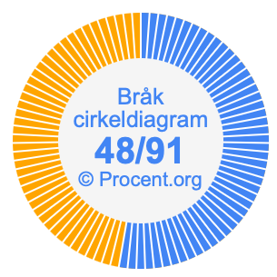 Illustrationerna nedan visar hur 48/91 och 52,75% delar upp ett cirkeldiagram olika men täcker samma område eftersom de är desamma.