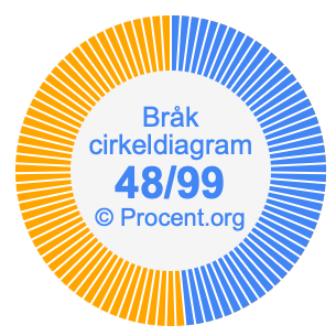 Illustrationerna nedan visar hur 48/99 och 48,48% delar upp ett cirkeldiagram olika men täcker samma område eftersom de är desamma.