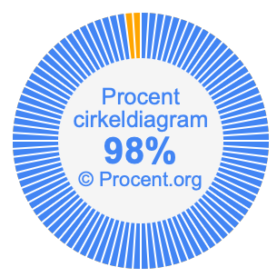 Illustrationerna nedan visar hur 49/50 och 98% delar upp ett cirkeldiagram olika men täcker samma område eftersom de är desamma.