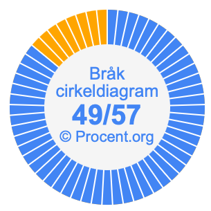 Illustrationerna nedan visar hur 49/57 och 85,96% delar upp ett cirkeldiagram olika men täcker samma område eftersom de är desamma.