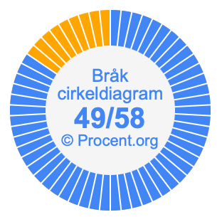 Illustrationerna nedan visar hur 49/58 och 84,48% delar upp ett cirkeldiagram olika men täcker samma område eftersom de är desamma.