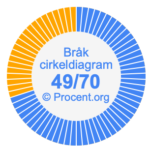 Illustrationerna nedan visar hur 49/70 och 70% delar upp ett cirkeldiagram olika men täcker samma område eftersom de är desamma.