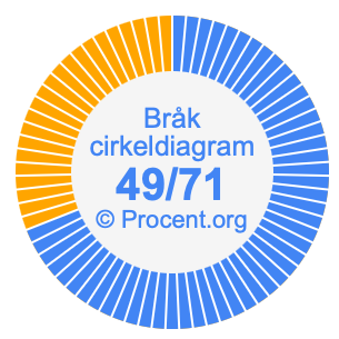 Dessutom kommer vi också att illustrera bråket 49/71 i ett cirkeldiagram och 49/71 som procent i ett cirkeldiagram.