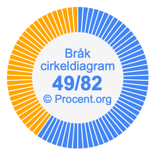 Illustrationerna nedan visar hur 49/82 och 59,76% delar upp ett cirkeldiagram olika men täcker samma område eftersom de är desamma.