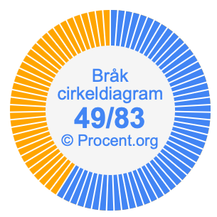 Illustrationerna nedan visar hur 49/83 och 59,04% delar upp ett cirkeldiagram olika men täcker samma område eftersom de är desamma.