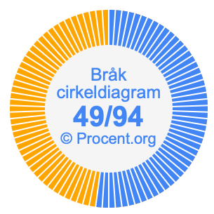 Dessutom kommer vi också att illustrera bråket 49/94 i ett cirkeldiagram och 49/94 som procent i ett cirkeldiagram.