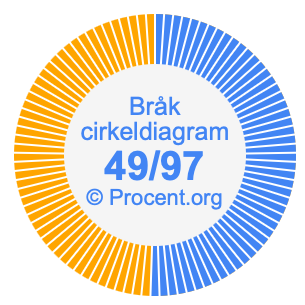 Dessutom kommer vi också att illustrera bråket 49/97 i ett cirkeldiagram och 49/97 som procent i ett cirkeldiagram.