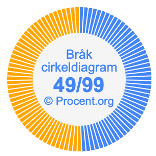 Illustrationerna nedan visar hur 49/99 och 49,49% delar upp ett cirkeldiagram olika men täcker samma område eftersom de är desamma.