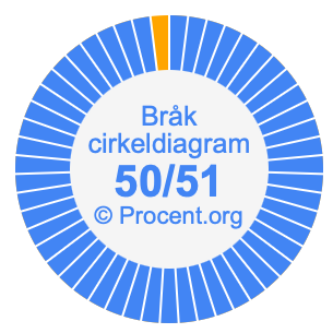 Dessutom kommer vi också att illustrera bråket 50/51 i ett cirkeldiagram och 50/51 som procent i ett cirkeldiagram.