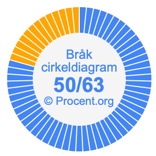 Illustrationerna nedan visar hur 50/63 och 79,37% delar upp ett cirkeldiagram olika men täcker samma område eftersom de är desamma.