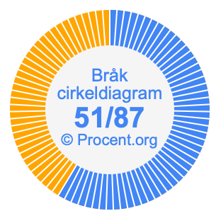 Dessutom kommer vi också att illustrera bråket 51/87 i ett cirkeldiagram och 51/87 som procent i ett cirkeldiagram.