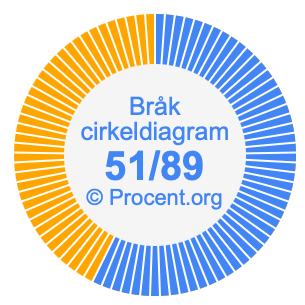 51/89 är ett bråk som betyder 51 av 89, och procent betyder något av 100. Vi kan därför göra följande ekvation för att få 51/89 som procent: