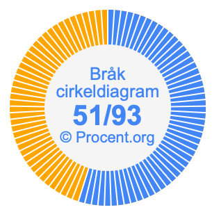 Dessutom kommer vi också att illustrera bråket 51/93 i ett cirkeldiagram och 51/93 som procent i ett cirkeldiagram.
