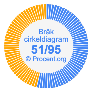 Illustrationerna nedan visar hur 51/95 och 53,68% delar upp ett cirkeldiagram olika men täcker samma område eftersom de är desamma.
