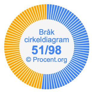 Dessutom kommer vi också att illustrera bråket 51/98 i ett cirkeldiagram och 51/98 som procent i ett cirkeldiagram.