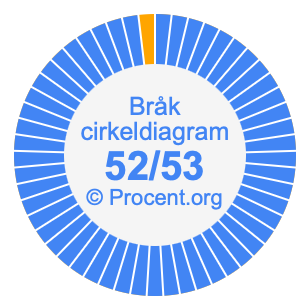 Dessutom kommer vi också att illustrera bråket 52/53 i ett cirkeldiagram och 52/53 som procent i ett cirkeldiagram.