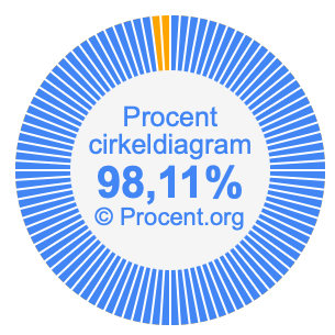 Illustrationerna nedan visar hur 52/53 och 98,11% delar upp ett cirkeldiagram olika men täcker samma område eftersom de är desamma.