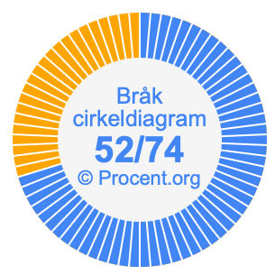 Dessutom kommer vi också att illustrera bråket 52/74 i ett cirkeldiagram och 52/74 som procent i ett cirkeldiagram.