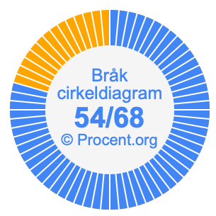 Illustrationerna nedan visar hur 54/68 och 79,41% delar upp ett cirkeldiagram olika men täcker samma område eftersom de är desamma.