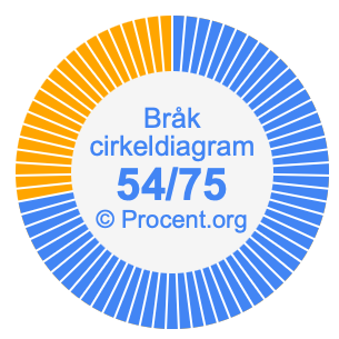 Dessutom kommer vi också att illustrera bråket 54/75 i ett cirkeldiagram och 54/75 som procent i ett cirkeldiagram.