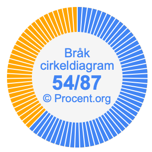 Dessutom kommer vi också att illustrera bråket 54/87 i ett cirkeldiagram och 54/87 som procent i ett cirkeldiagram.