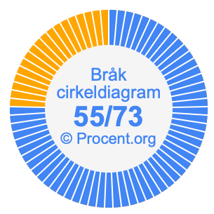 Dessutom kommer vi också att illustrera bråket 55/73 i ett cirkeldiagram och 55/73 som procent i ett cirkeldiagram.