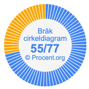 Dessutom kommer vi också att illustrera bråket 55/77 i ett cirkeldiagram och 55/77 som procent i ett cirkeldiagram.