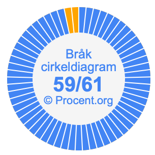 Dessutom kommer vi också att illustrera bråket 59/61 i ett cirkeldiagram och 59/61 som procent i ett cirkeldiagram.