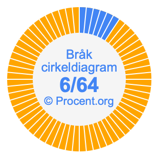 Illustrationerna nedan visar hur 6/64 och 9,38% delar upp ett cirkeldiagram olika men täcker samma område eftersom de är desamma.