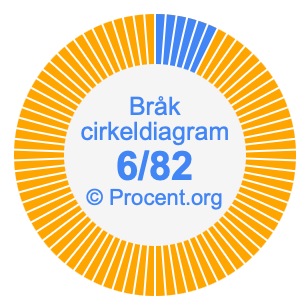 Dessutom kommer vi också att illustrera bråket 6/82 i ett cirkeldiagram och 6/82 som procent i ett cirkeldiagram.