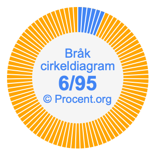 Dessutom kommer vi också att illustrera bråket 6/95 i ett cirkeldiagram och 6/95 som procent i ett cirkeldiagram.