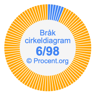 Dessutom kommer vi också att illustrera bråket 6/98 i ett cirkeldiagram och 6/98 som procent i ett cirkeldiagram.