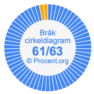 Dessutom kommer vi också att illustrera bråket 61/63 i ett cirkeldiagram och 61/63 som procent i ett cirkeldiagram.