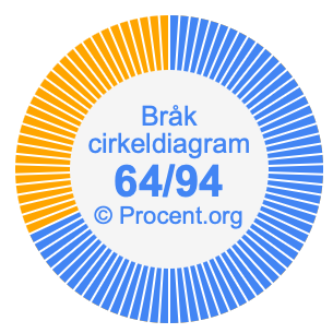 64/94 är ett bråk som betyder 64 av 94, och procent betyder något av 100. Vi kan därför göra följande ekvation för att få 64/94 som procent: