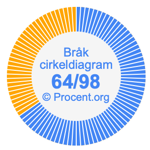 Dessutom kommer vi också att illustrera bråket 64/98 i ett cirkeldiagram och 64/98 som procent i ett cirkeldiagram.