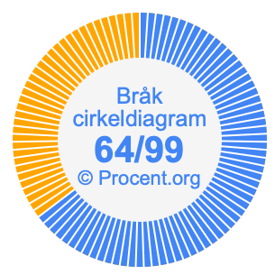 Illustrationerna nedan visar hur 64/99 och 64,65% delar upp ett cirkeldiagram olika men täcker samma område eftersom de är desamma.