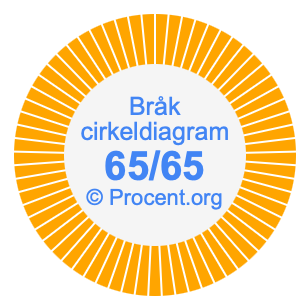 Dessutom kommer vi också att illustrera bråket 65/65 i ett cirkeldiagram och 65/65 som procent i ett cirkeldiagram.