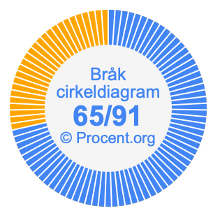 Dessutom kommer vi också att illustrera bråket 65/91 i ett cirkeldiagram och 65/91 som procent i ett cirkeldiagram.