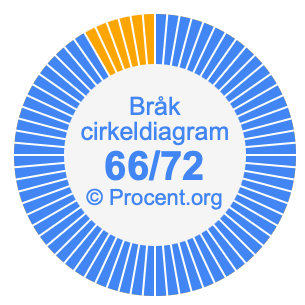 Dessutom kommer vi också att illustrera bråket 66/72 i ett cirkeldiagram och 66/72 som procent i ett cirkeldiagram.