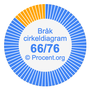 Illustrationerna nedan visar hur 66/76 och 86,84% delar upp ett cirkeldiagram olika men täcker samma område eftersom de är desamma.