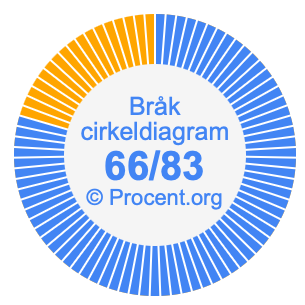 Dessutom kommer vi också att illustrera bråket 66/83 i ett cirkeldiagram och 66/83 som procent i ett cirkeldiagram.