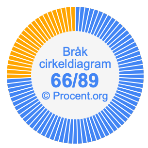 Dessutom kommer vi också att illustrera bråket 66/89 i ett cirkeldiagram och 66/89 som procent i ett cirkeldiagram.