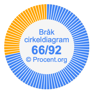 Illustrationerna nedan visar hur 66/92 och 71,74% delar upp ett cirkeldiagram olika men täcker samma område eftersom de är desamma.