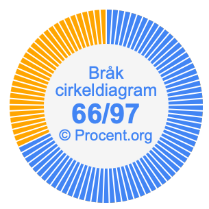 Dessutom kommer vi också att illustrera bråket 66/97 i ett cirkeldiagram och 66/97 som procent i ett cirkeldiagram.