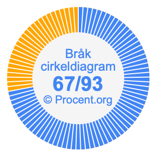 Dessutom kommer vi också att illustrera bråket 67/93 i ett cirkeldiagram och 67/93 som procent i ett cirkeldiagram.