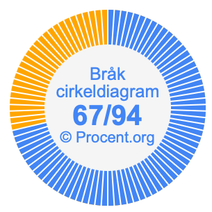 Illustrationerna nedan visar hur 67/94 och 71,28% delar upp ett cirkeldiagram olika men täcker samma område eftersom de är desamma.