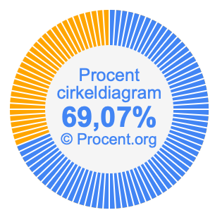 Illustrationerna nedan visar hur 67/97 och 69,07% delar upp ett cirkeldiagram olika men täcker samma område eftersom de är desamma.